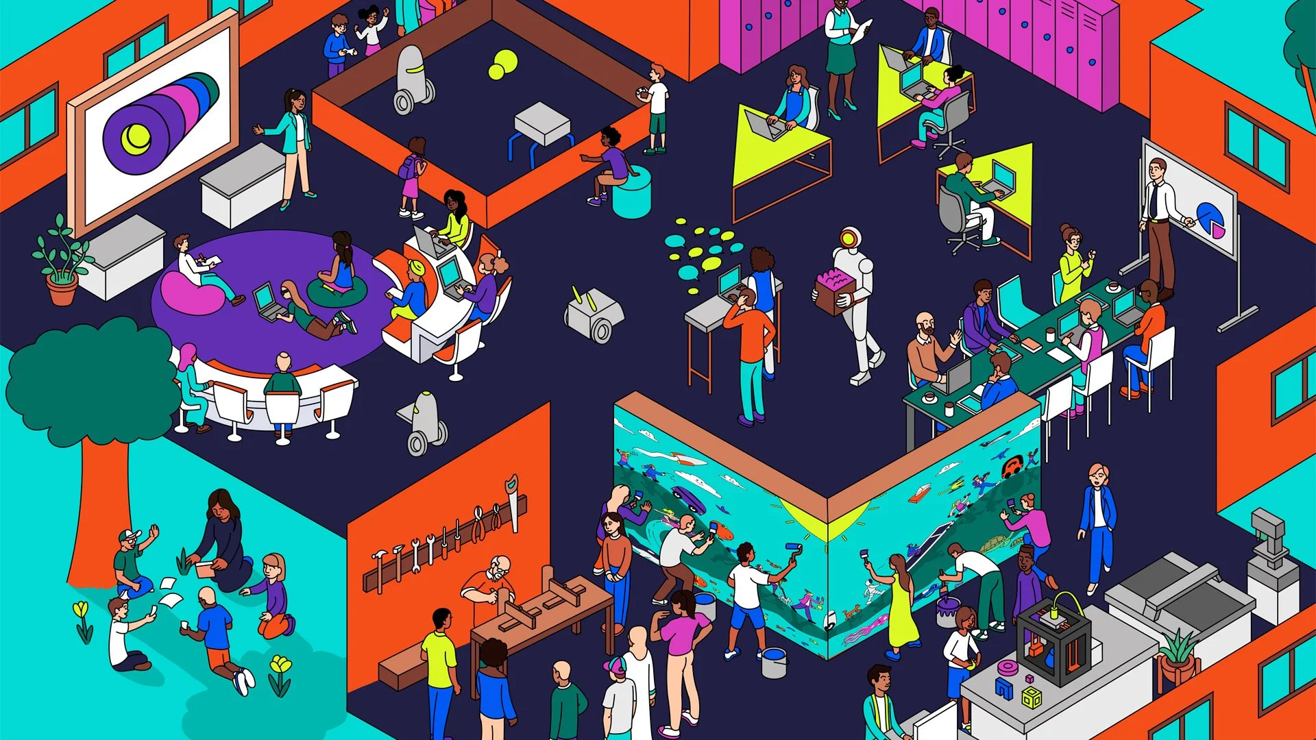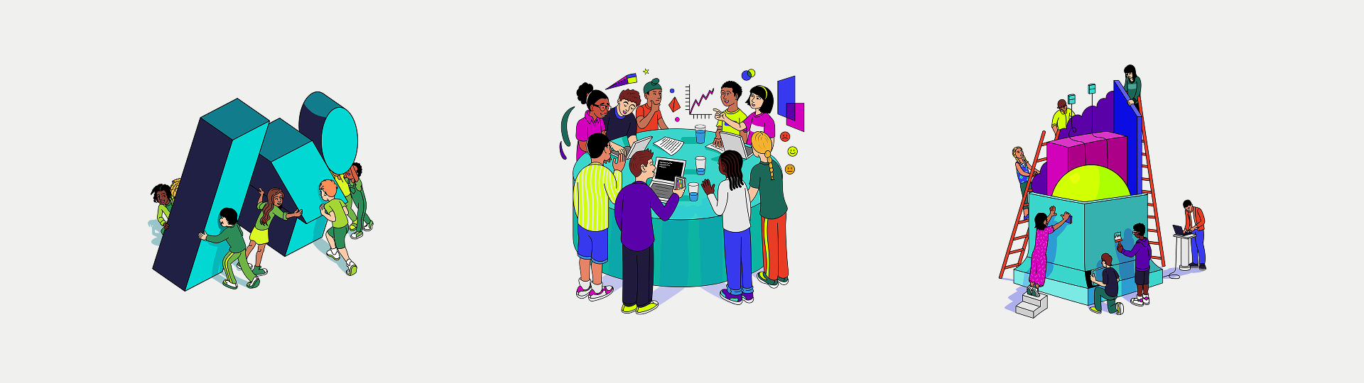 Building on earlier collaboration with aiEDU, I led a comprehensive rebrand in 2024 at Trollbäck+Company that introduced a scalable design system, vibrant color palette, and a new logo—a dynamic building-block symbol that forms the letters “A” and “I.” We also collaborated with illustrator Liam Eisenberg to expand the organization’s custom illustration library. Notably, we did not use AI to create any brand assets.